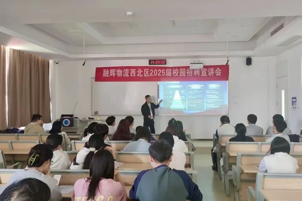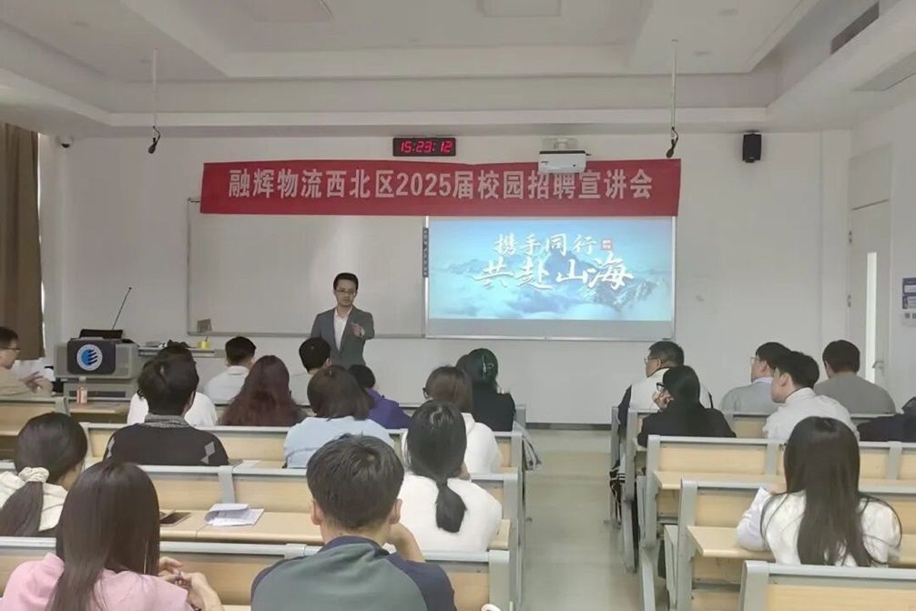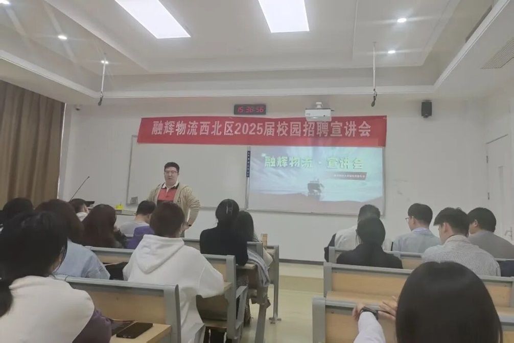 宣讲会上,融辉物流代表首先系统介绍了企业发展定位与核心优势。作为2024年成立的新锐物流企业,融辉物流专注于100KG-10T的大零担物流网络,由拥有近20年行业经验的资深人士创立,以“引领大零担数字化升级”为使命,致力于打造大零担网络民族品牌。针对学子关注的服务能力,代表重点解读了核心产品 “巨力达” 的品质保障、高效配送、经济实惠等特色,以及专业包装加固、应急物流响应、货运保险代理、实时物流追踪四大增值服务体系,展现了企业在数字化管控与服务优化方面的实力。