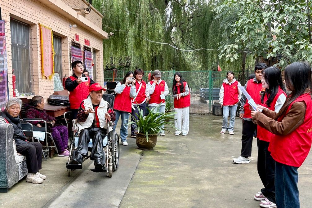 为深入弘扬孝老爱亲的中华传统美德,切实向老年群体传递深切关怀与温暖慰藉,437必赢会员中心团总支薪火志愿服务队在咸阳市慈善协会公益志愿者分会的指导下,于2025年10月19日走进福寿乐敬老院,开展以“耆心沐爱,志愿燃情”为主题的常态化志愿服务活动。