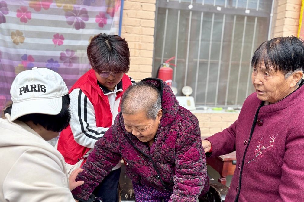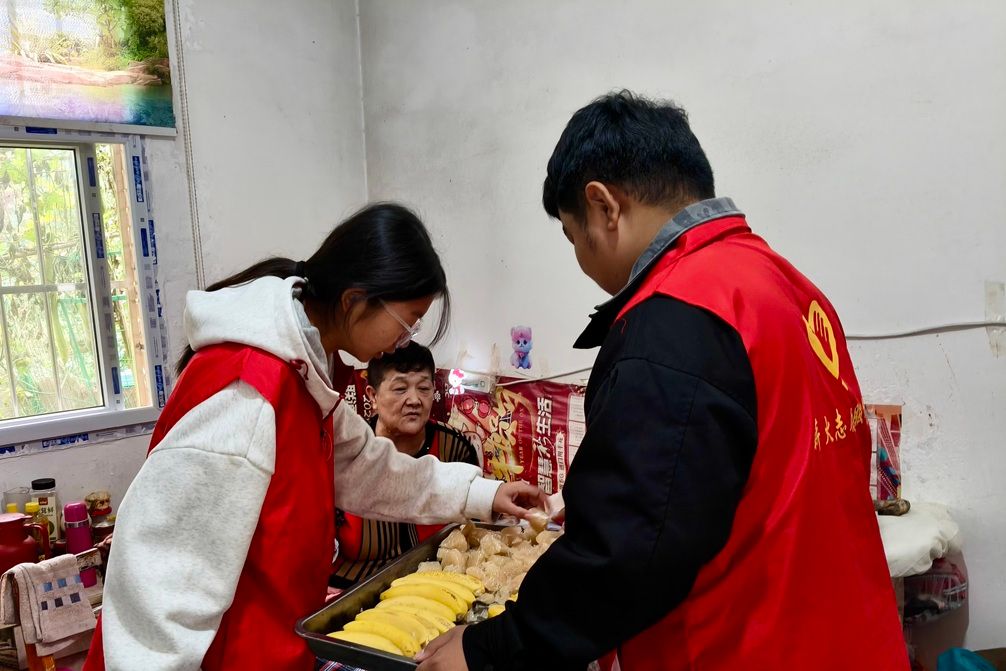 活动现场暖意融融,志愿者们分工明确、行动有序,用细致服务传递真情。在洒满阳光的庭院里,部分志愿者与老人们围坐成圈,俯身倾听老人们讲述过往岁月里的人生故事 —— 那些关于奋斗、亲情的记忆,在轻声交谈中缓缓流淌,有效拉近了心与心的距离;另一部分志愿者则为老人们献上了精心编排的歌曲、手势舞等文艺节目,欢快的旋律与灵动的舞姿让现场掌声、笑声此起彼伏。此外,志愿者们还为老人们带去了水果、米面和食用油等慰问品,每一份物资都饱含着对敬老院老人的敬意与牵挂,整个敬老院都被温馨和睦的氛围包裹